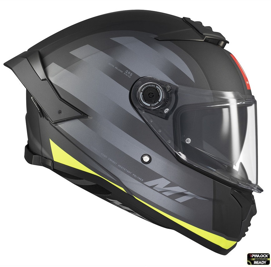 • mecanismul MT-QVSS este patentat de MT si permite utilizatorului sa ataseze sau detaseze viziera foarte rapid si confortabil, fara a da casca jos din cap;