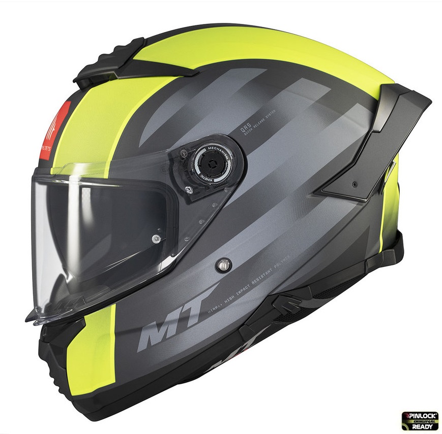 – este un model de casca sport-touring, care incorporeaza noul mecanism de viziera tip MT-QVSS, un sistem patentat de MT si care permite shimbarea extrem de rapida a vizierei;