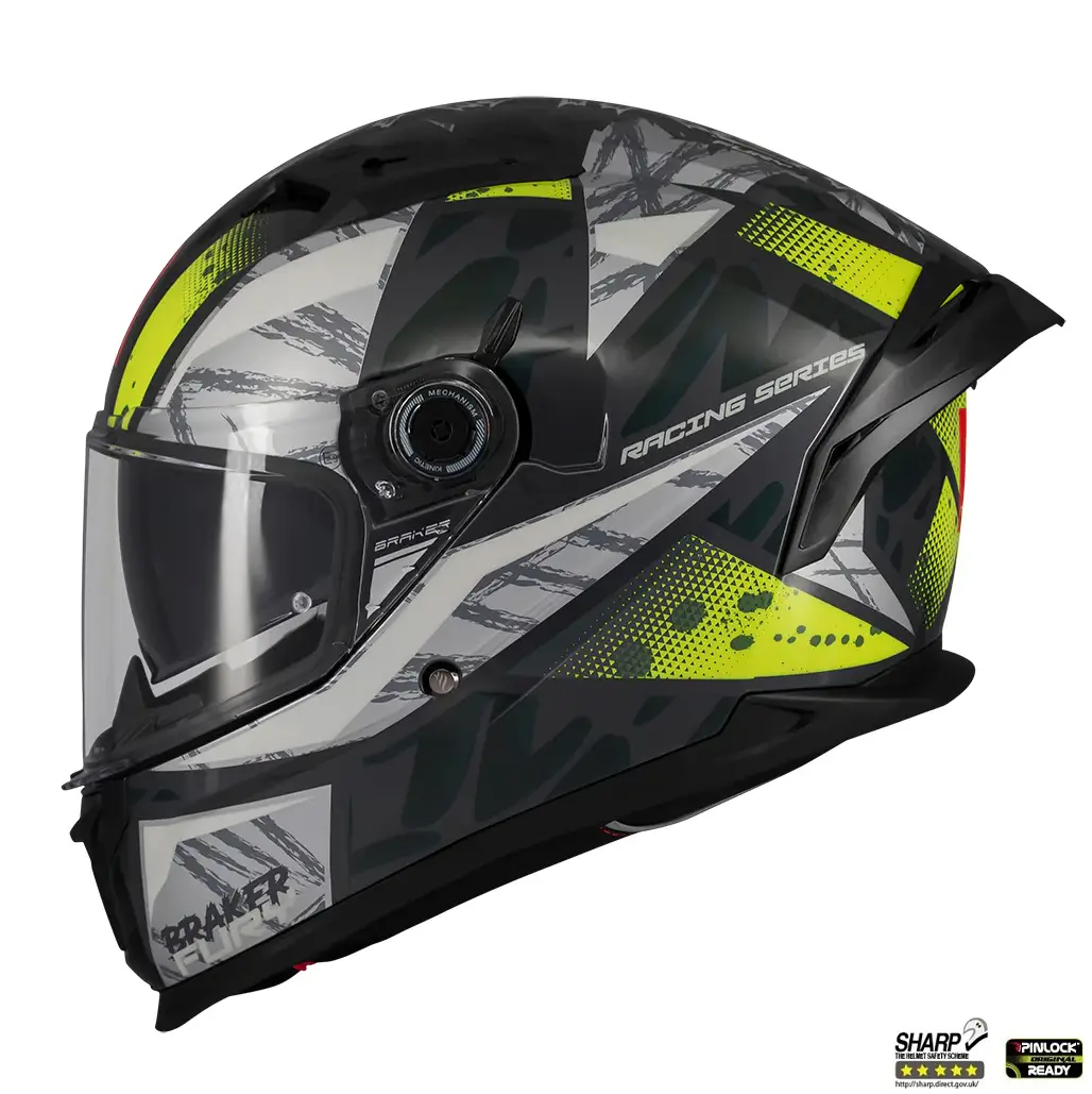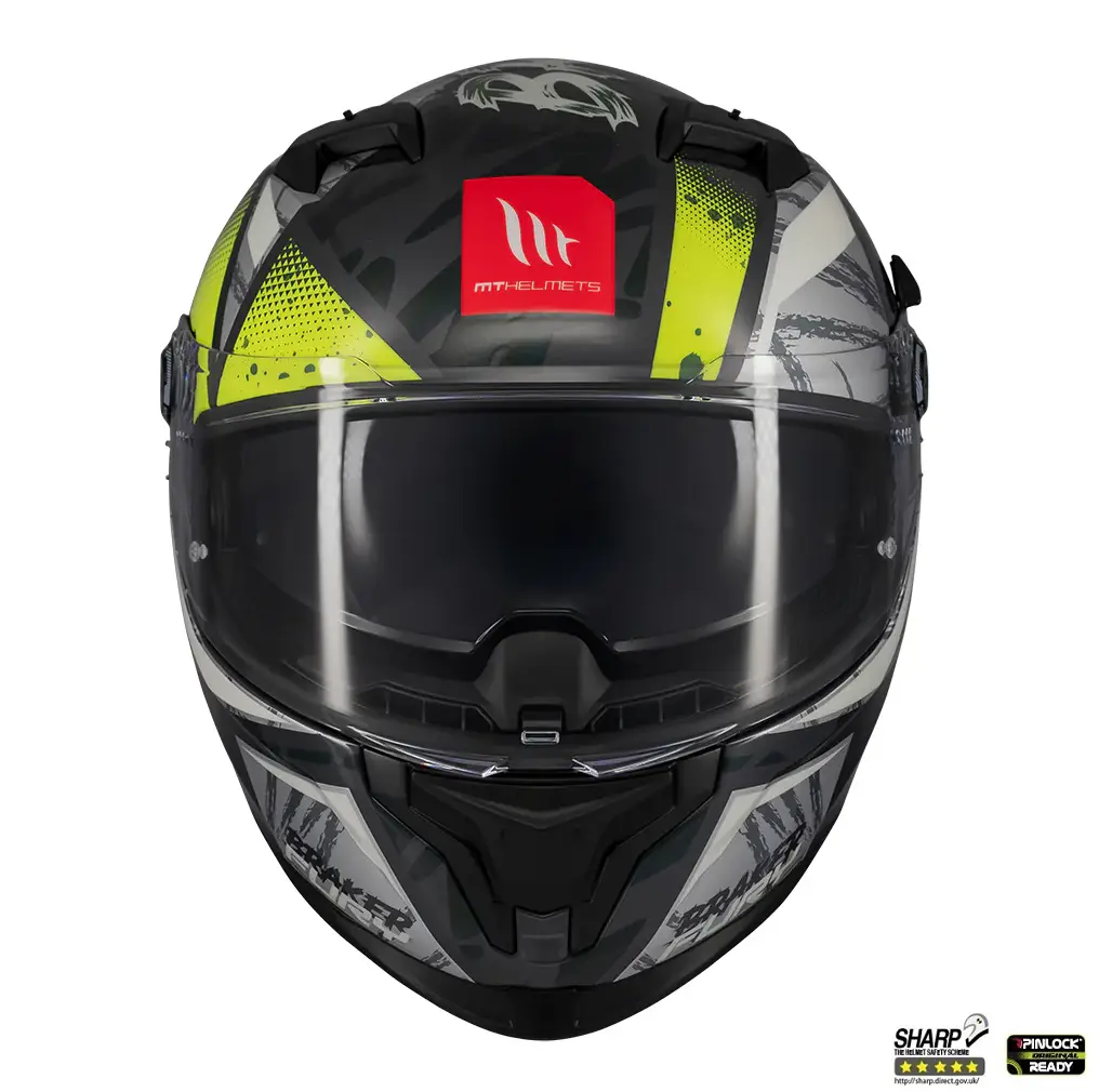 Casca integrala MT Braker SV Fury C6 gri/galben lucios (ochelari soare integrati) – tip viziera: MT-V-28B – DKS435 – punctaj maxim SHARP Test – 5 stele